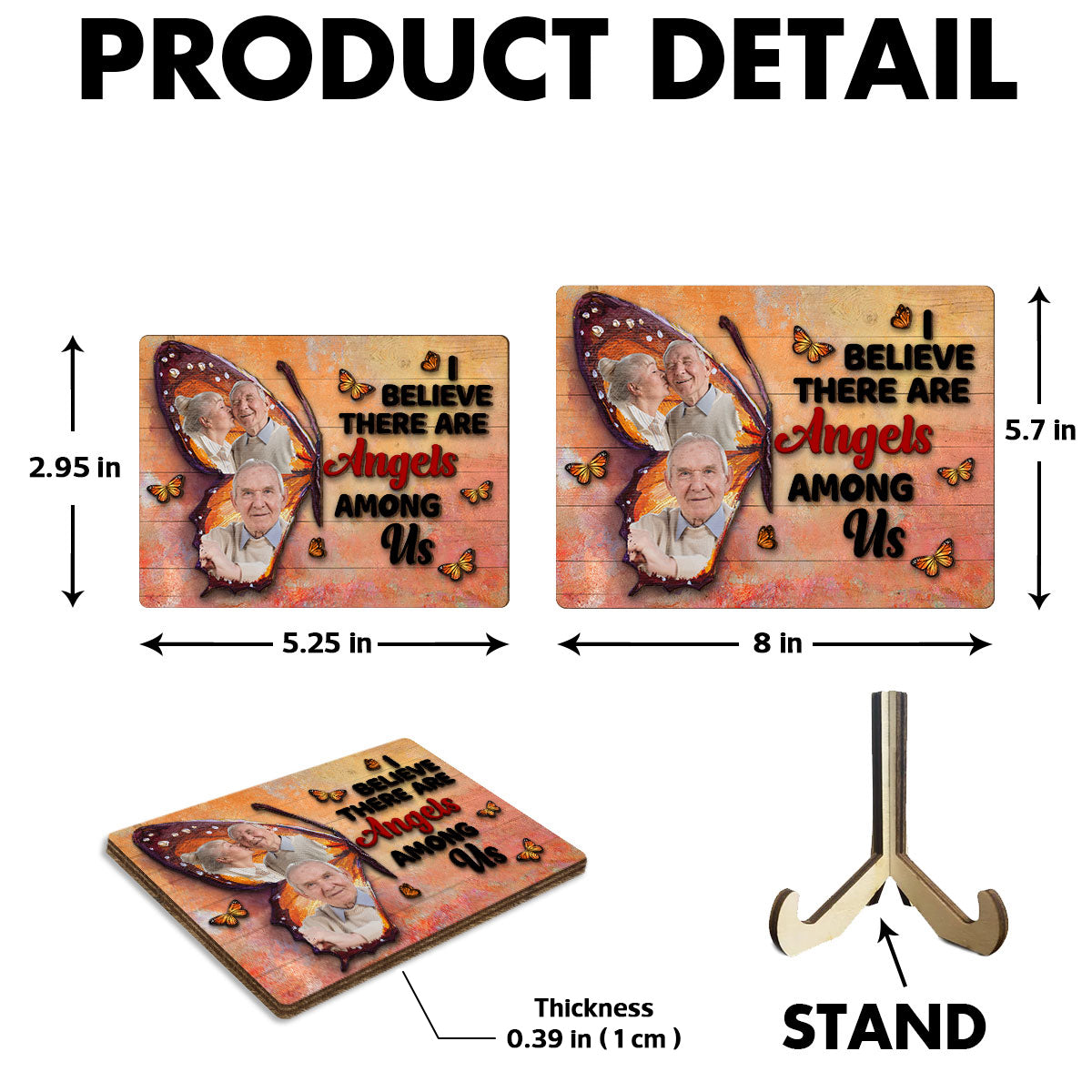 Angels Among Us Butter Fly Memorial Photo Keepsake Personalized 2-Layer Wooden Plaque