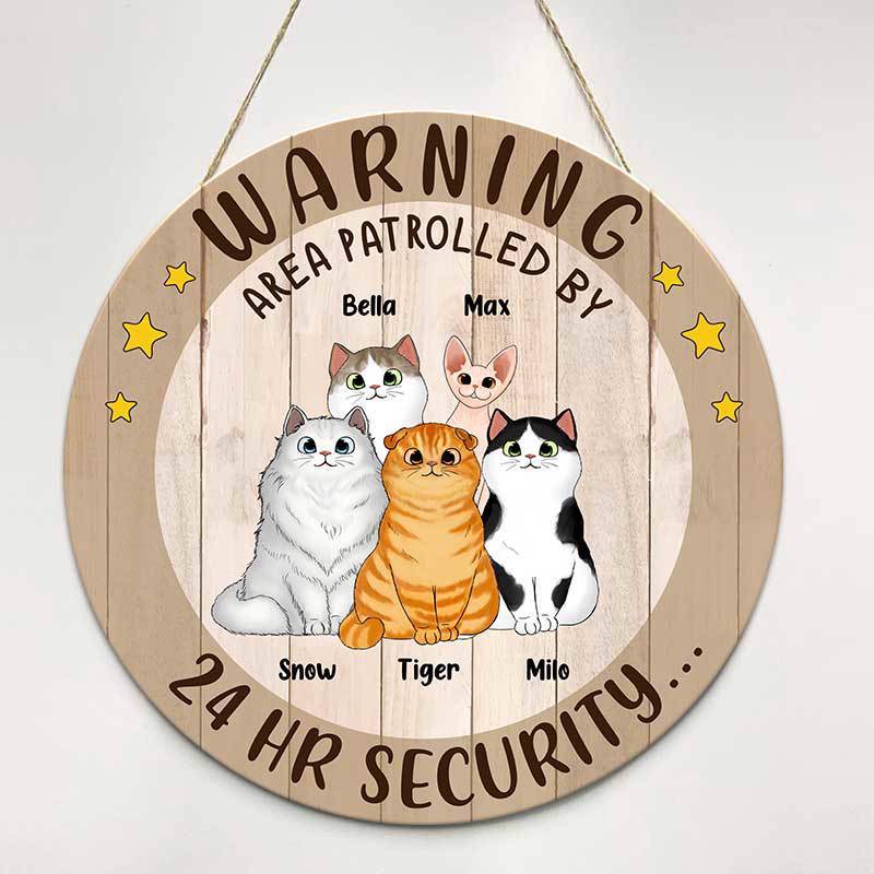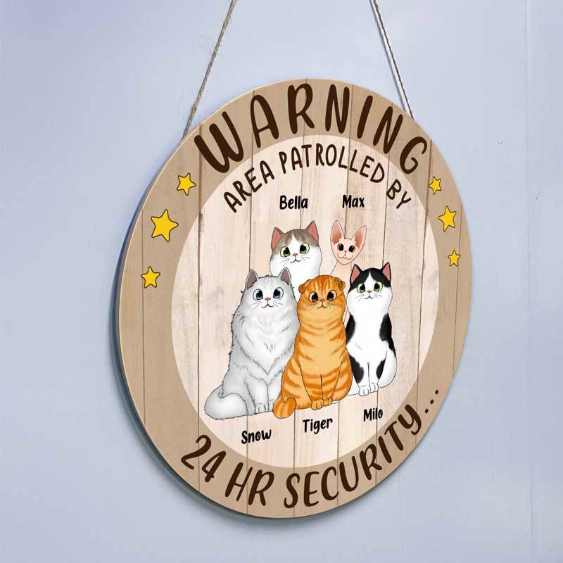 Area Patrolled By Cats Personalized Door Hanger Sign
